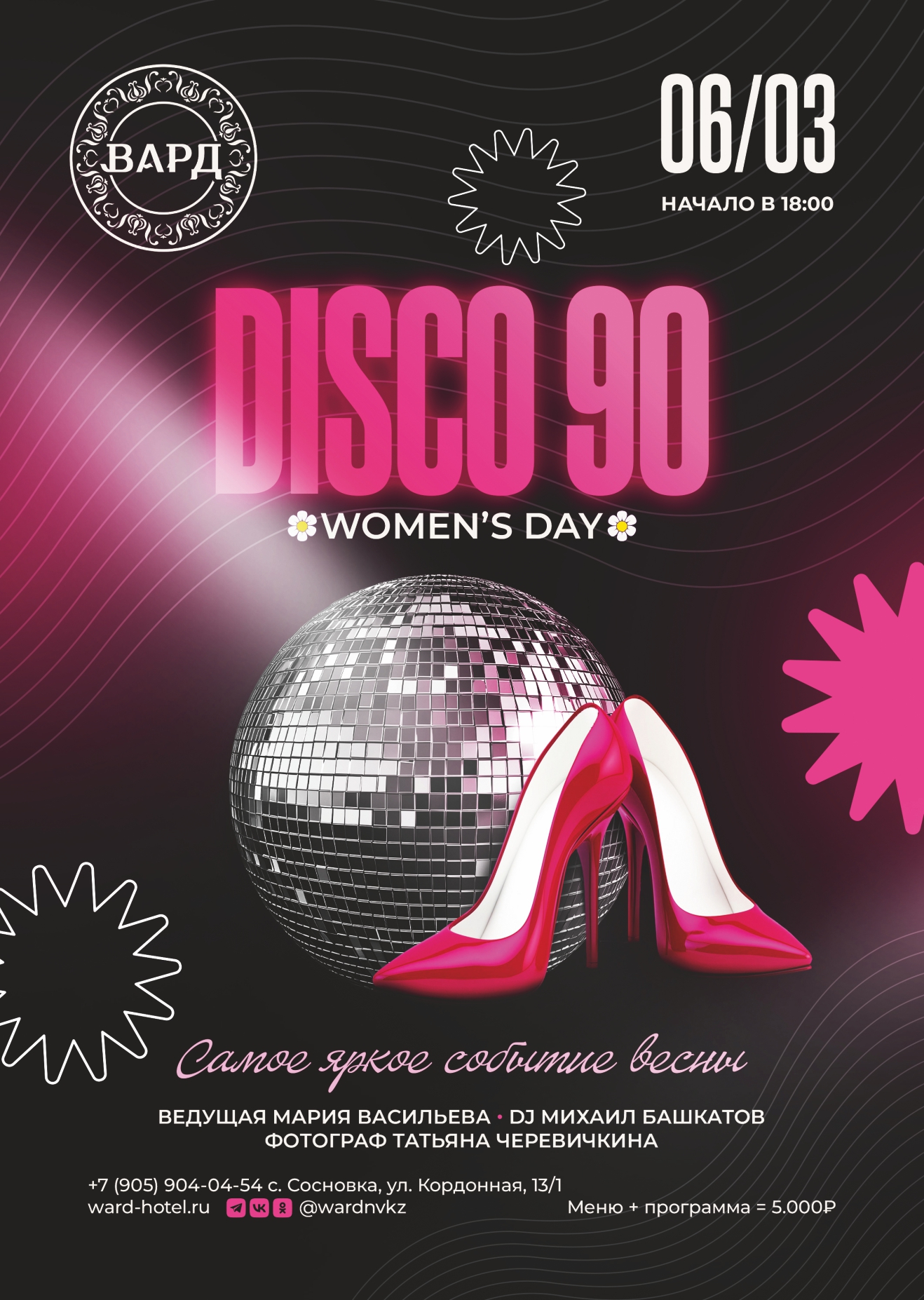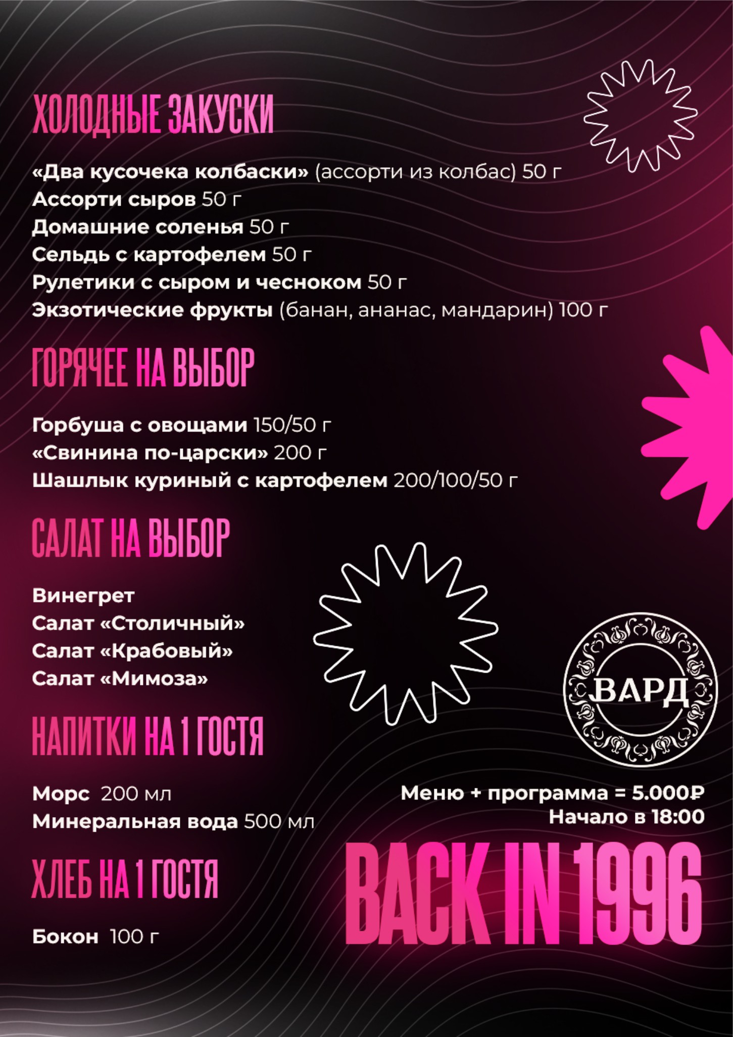 Погрузитесь в атмосферу бурных 90‑х! Достаньте из шкафа самые яркие атрибуты эпохи и приходите танцевать под любимые хиты.