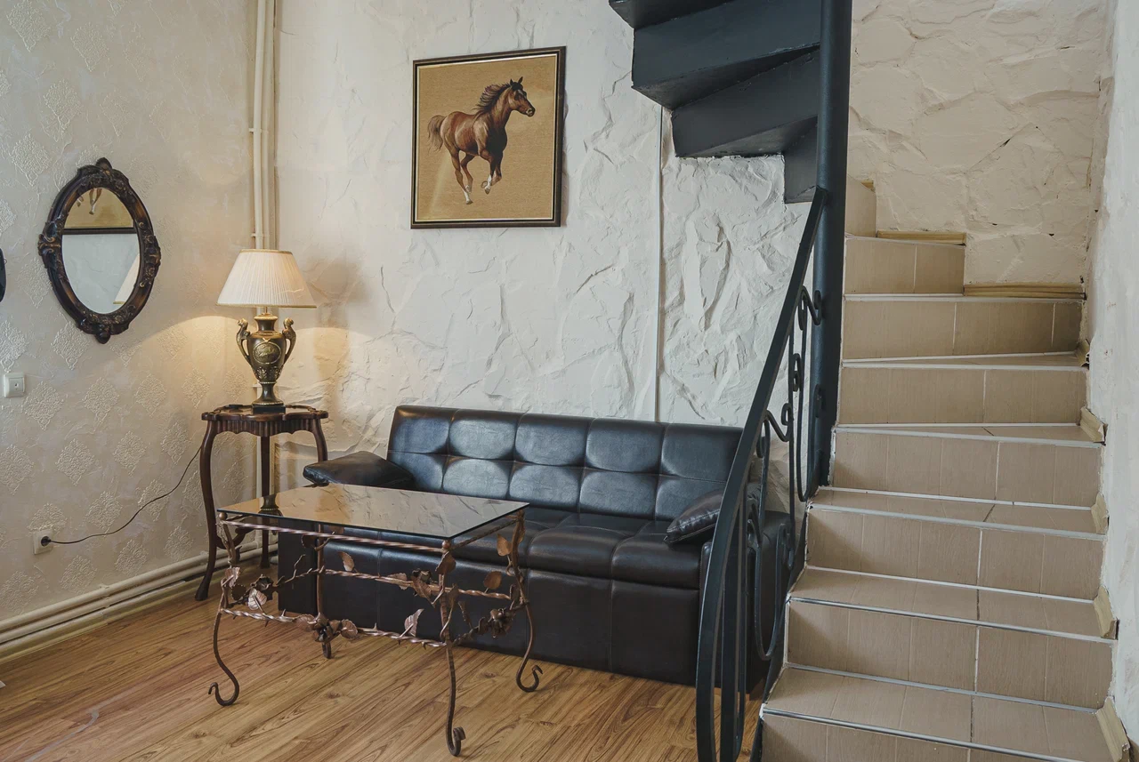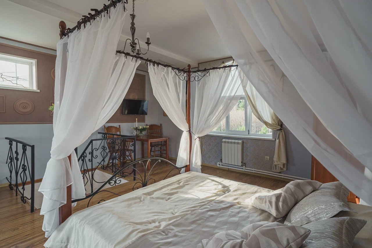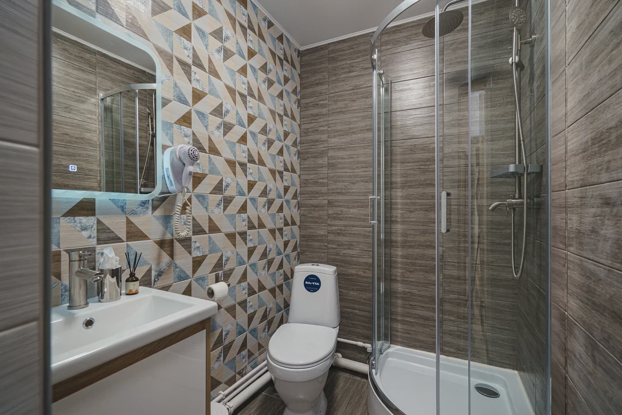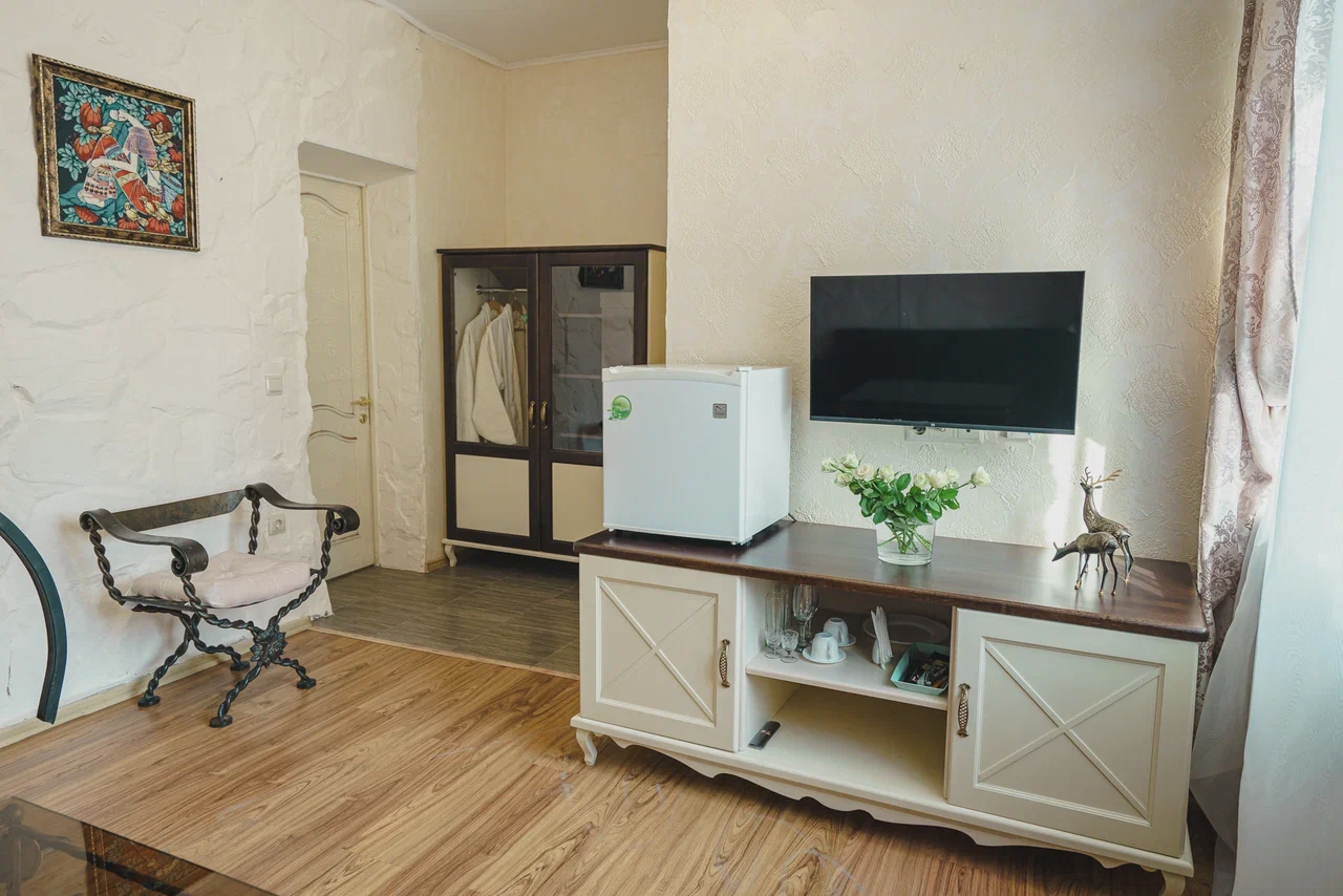 Двухспальная кровать, Wi-Fi, чайная станция, ванная комната с косметическими средствами, феном и тапочками, 2 LCD телевизора, диван-кровать.