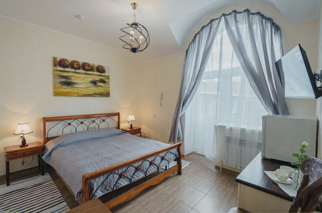 Двухспальная кровать, Wi-Fi, чайная станция, ванная комната с косметическими средствами, феном и тапочками, LCD телевизор, телефон.
