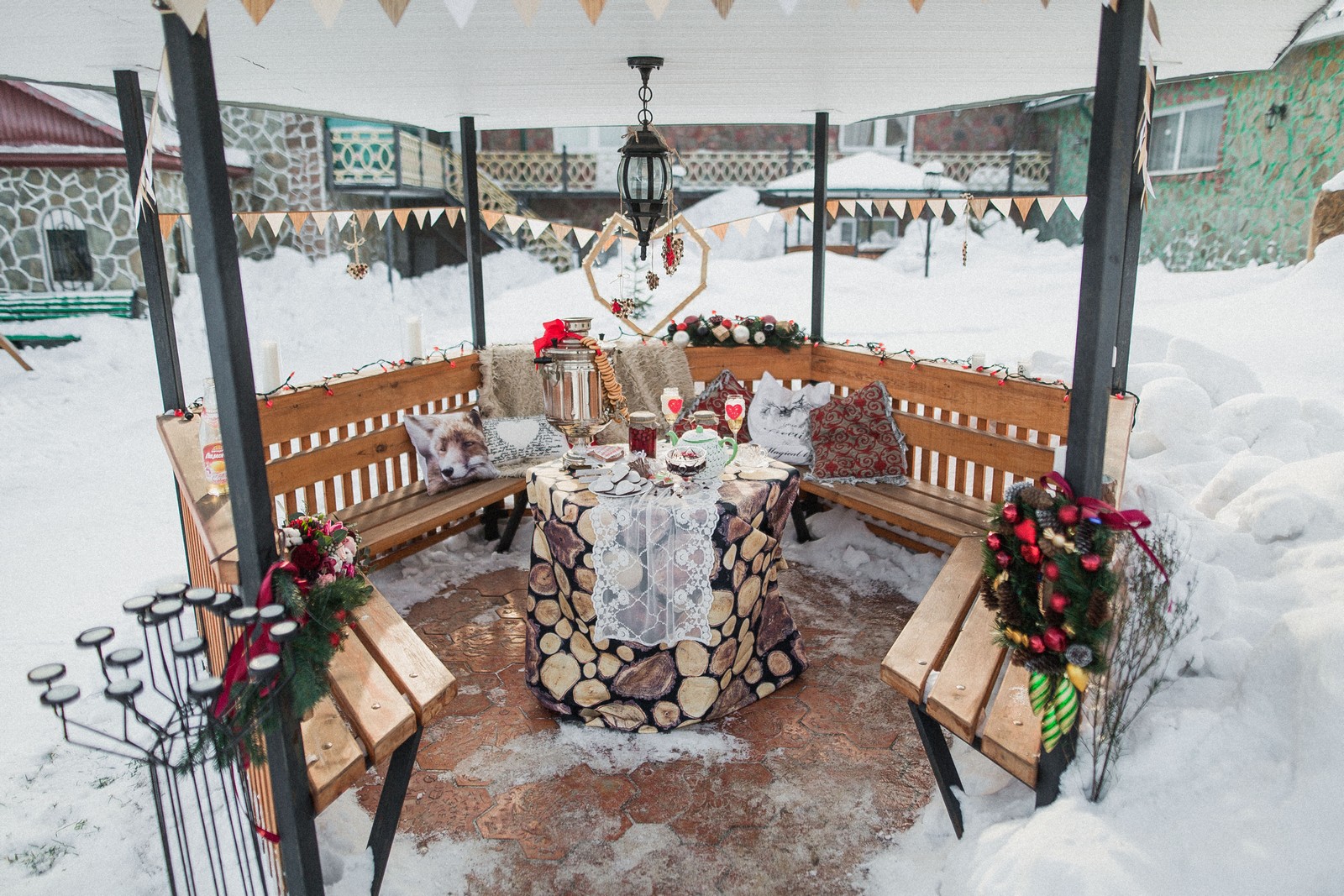 Скидка 10% на размещение ваших гостей в номерах гостиницы: от эконом до люкс класса. Всем желающим отпраздновать свадьбу за городом, мы предоставляем Свадебный номер для новобрачных ЛЮКС в подарок от Комплекса. От 20 гостей. До 20 гостей со скидкой 50%.